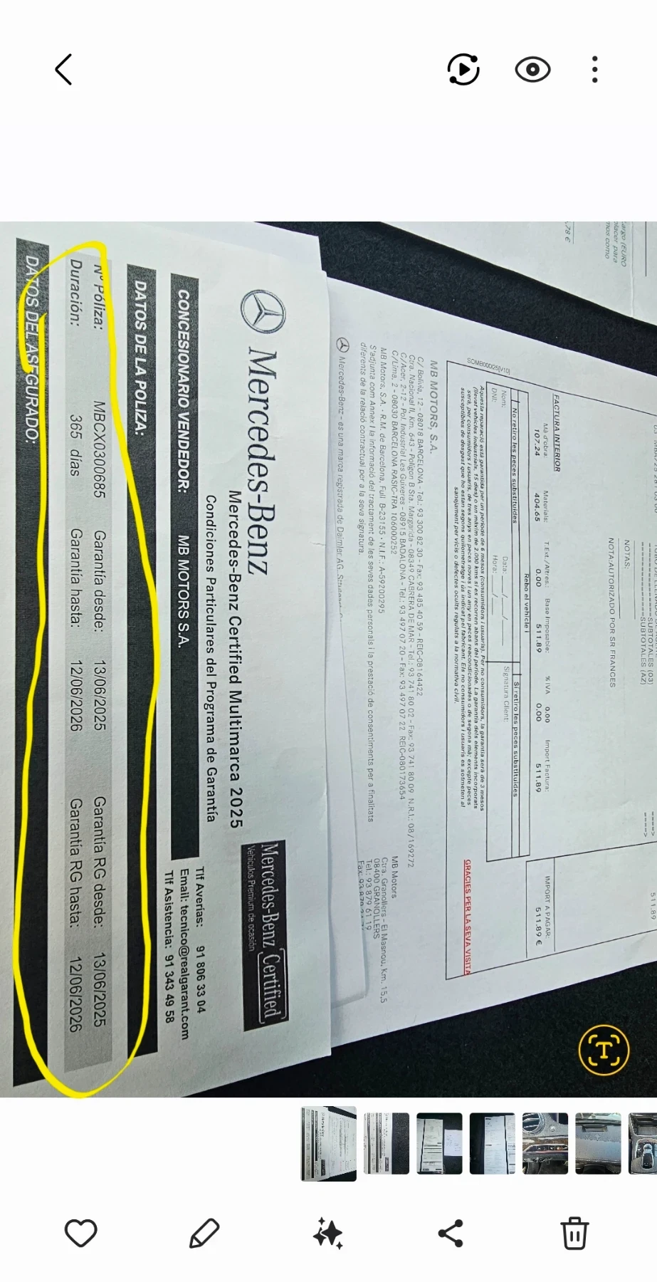 Колата е карана във окръг Барселона Закупена е от магазина на Мерседес бенц Барселона Поддръжката е правена във същия сервиз от където е купена и има пълна гаранция до 06. 2026 Сменено масло на скоростта кутия и на двигателя фактура от сервиза на Мерцедес бенц Барселона тел. за връзка 0034 637 25 84 66