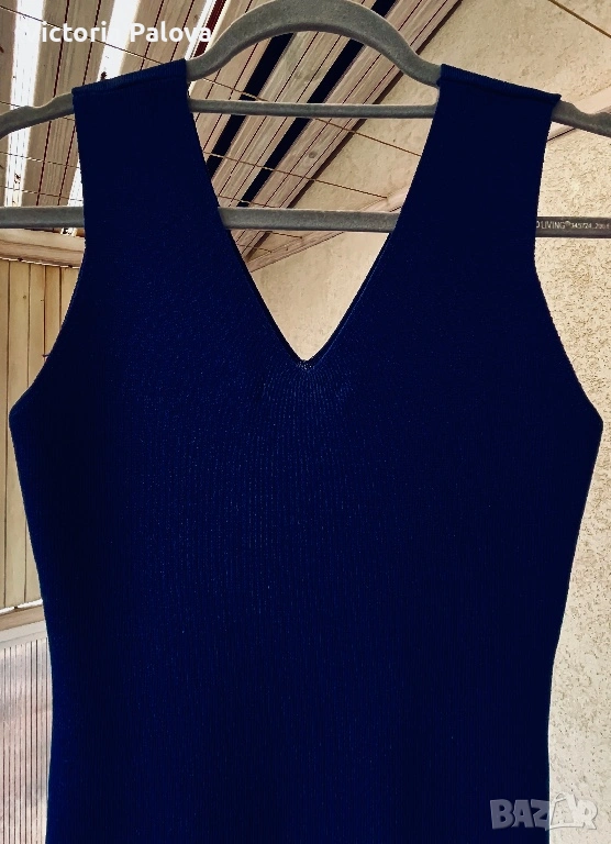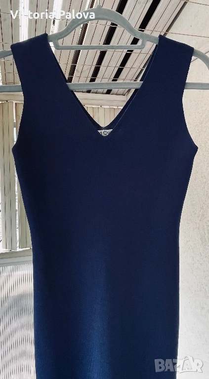 Елегантна рокля без ръкави RED QUEEN FASHION COLLECTION от плътно гладко трико, което следва линията на тялото и оформя силуета - изчистен и женствен. Красиво V- деколте отпред и на гърба, минималистична кройка, удължаваща фигурата и създаваща усещане за стилна строгост и елегантност. Роклята стои изключително благородно със своя гладък, тежък , еластичен плат, който обгръща тялото, без да го ограничава - уникален и малко различен модел. ГО - 36-48см, дължина - 104см.