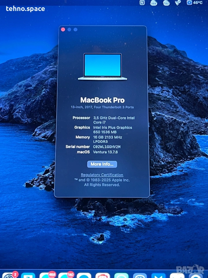 Mака е в отлично визуално състояние, трудно различим от НОВ и е в безупречна техническа кондиция. В комплект със зарядното у-во и кабел. Батерията е в добро състояние, на 320 цикъла е и издържа до 6 часа. Чисто нова инсталация на Mac OS Ventura, без акаунти, iCloud пароли и т.н.