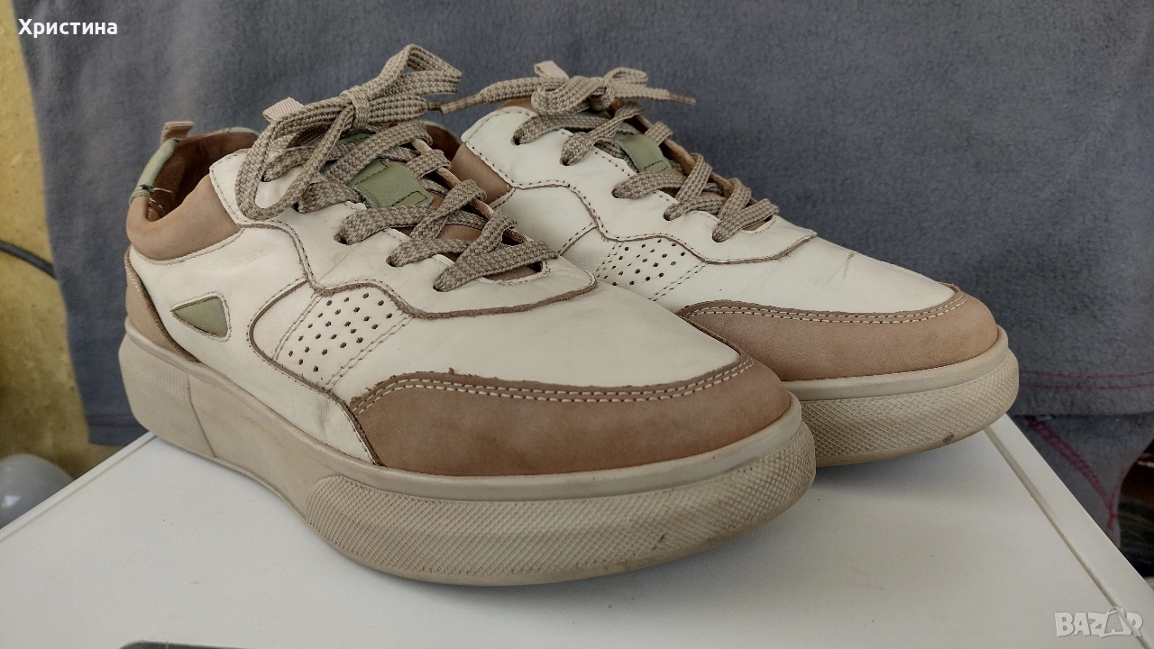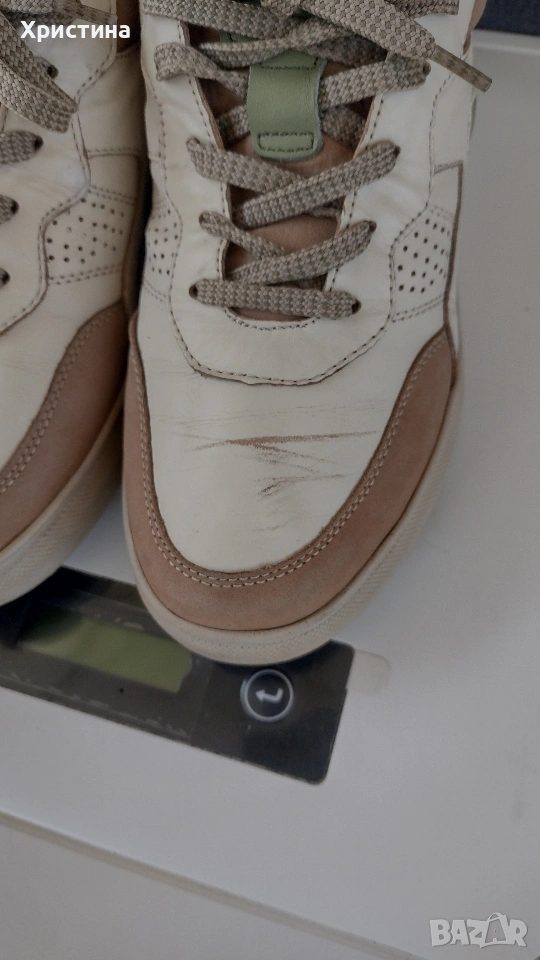 Обувките са естествена кожа имат лека забележка снимала съм я, изпращам с опция преглед и тест с удобен за вас куриер.