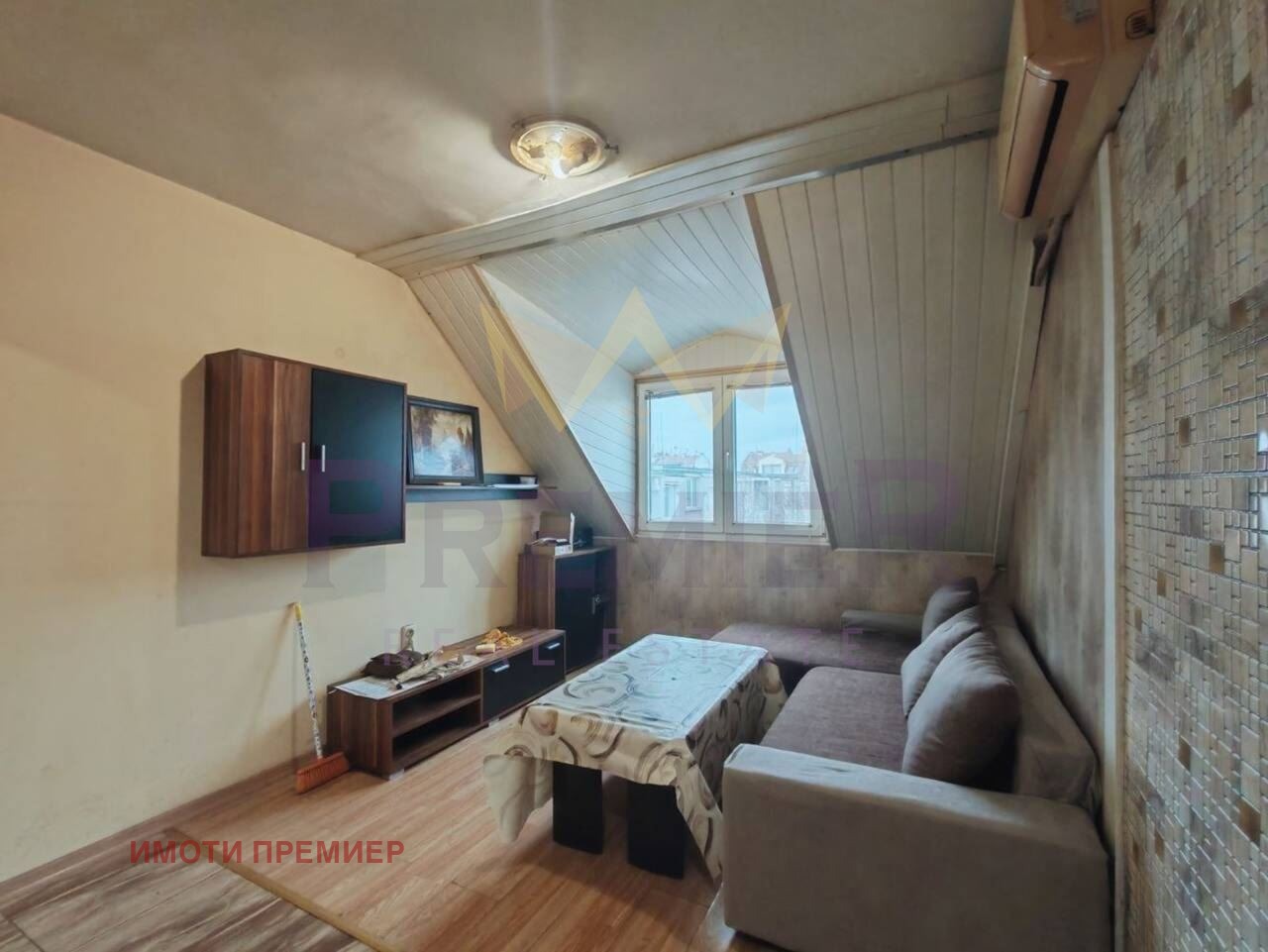 Имоти Премиер представя двустаен апартамент в квартал Възраждане, Бургас. Имотът се намира на последен пети етаж в тухлена сграда.