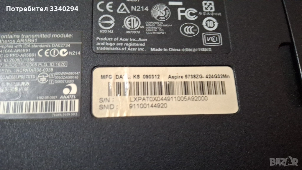 Лаптоп Acer Aspire 5738ZG → Обява 53239730