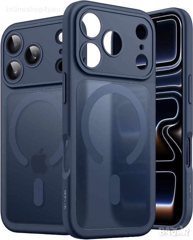 Матов Magsafe кейс за Apple iPhone 17 Pro Max - Черен и Тъмно син