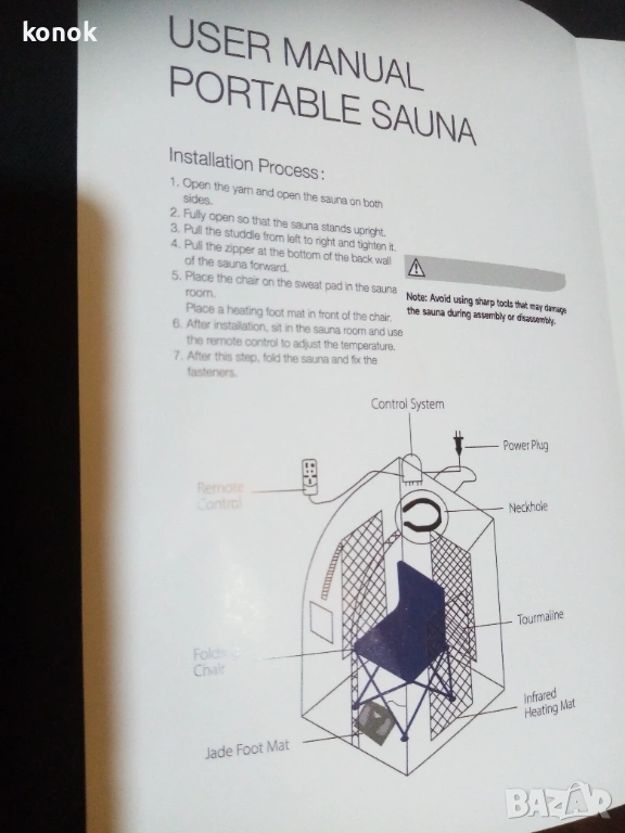 Преносима домашна мини-сауна БА-ГУА с инфрачервени лъчи по специални технологии, използвайки и свойствата на турмалин и черен нефрит