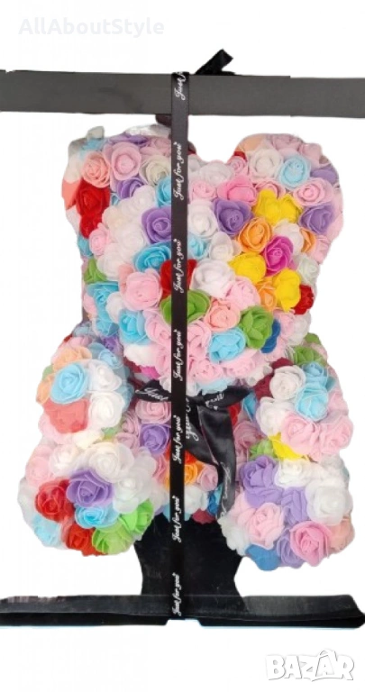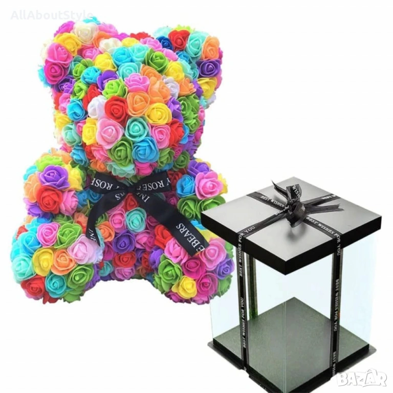 Мече от разноцветни рози в луксозна кутия → Обява 53240027