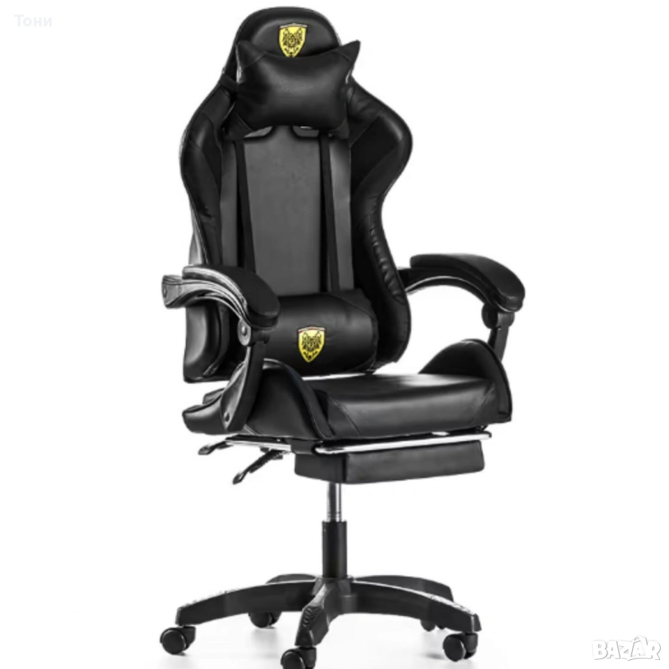 Черен геймърски стол с прибираща се поставка за крака – максимален комфорт при дълги часове игра → Обява 53240032