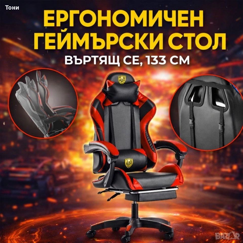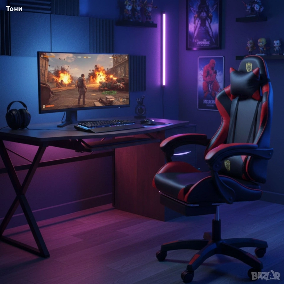 Ергономичен геймърски стол с поставка за крака – комфорт и стабилност за дълги часове без болка → Обява 53240038