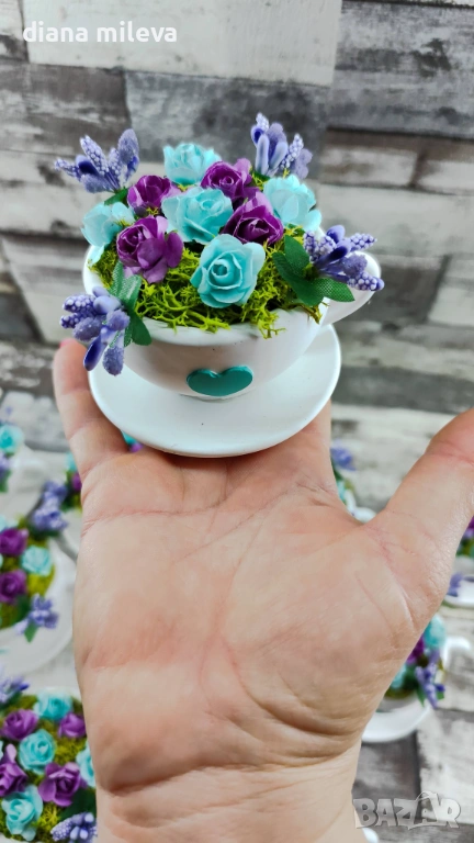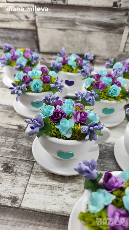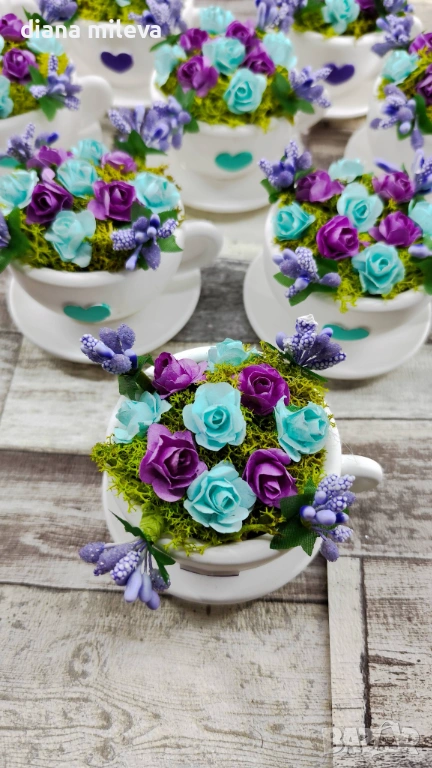 Сладурски Чашки с нежни цветлета в тюркоаз и лилаво!! → Обява 53240250