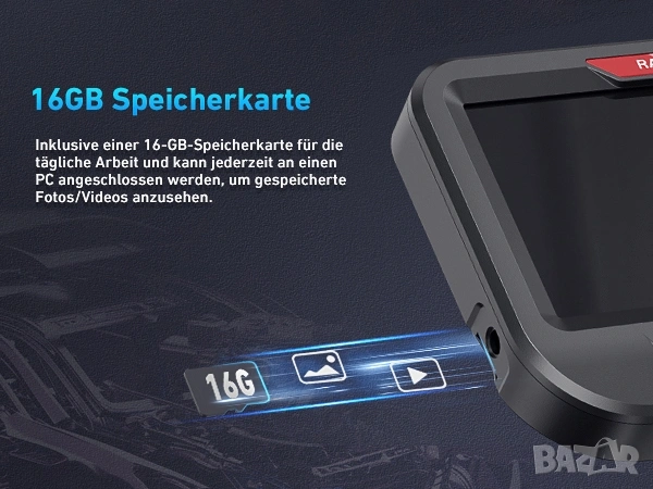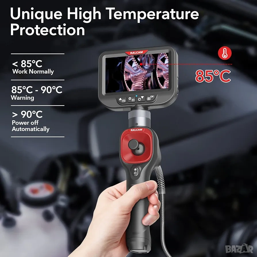 Индустриалната ендоскопска камера Ralcam е високотехнологичен инструмент за визуална инспекция, предназначен за професионалисти в автомобилната индустрия, ВИК услугите и поддръжката на машини. Уредът разполага с гъвкава, управляема сонда с 360-градусова ротация и ярък 4.3-инчов IPS дисплей, осигуряващ кристално чисто изображение. Със своята здрава конструкция и интелигентни защитни системи, този бороскоп позволява детайлен оглед на труднодостъпни зони като цилиндри на двигатели, тръбопроводи и вентилационни шахти.