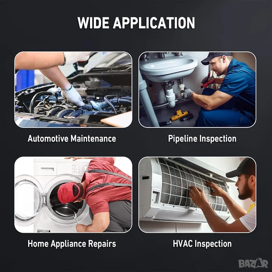 * 360° Управляема сонда: Прецизен джойстик позволява пълна ротация на върха на камерата, осигурявайки видимост във всички посоки без необходимост от въртене на целия кабел.