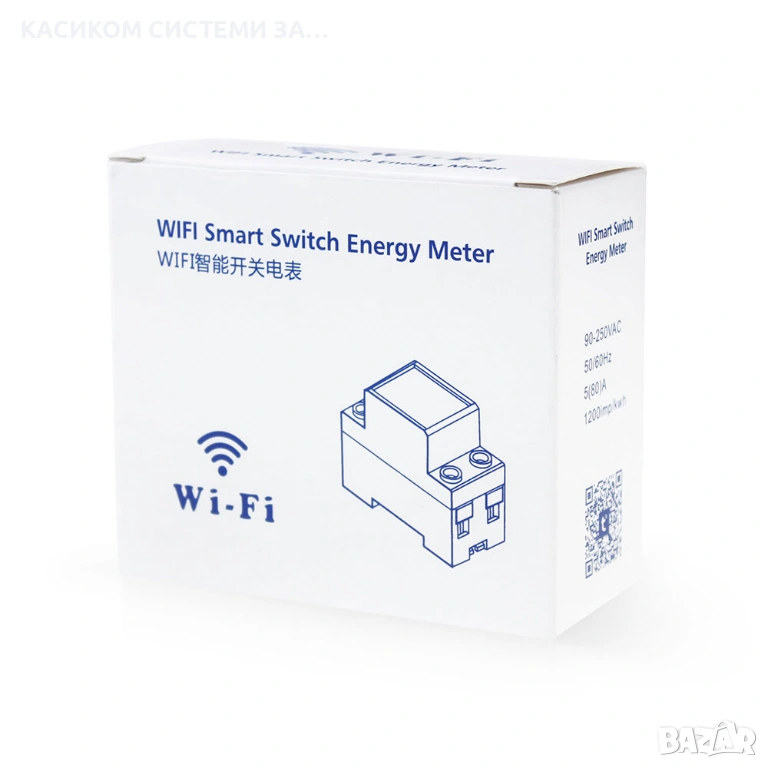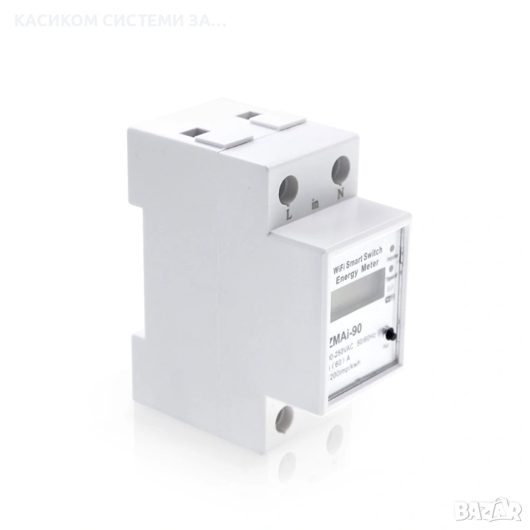 Смарт електромер , За 35mm DIN, 220V, 60A, Wi-Fi, Tuya Smart, Бял