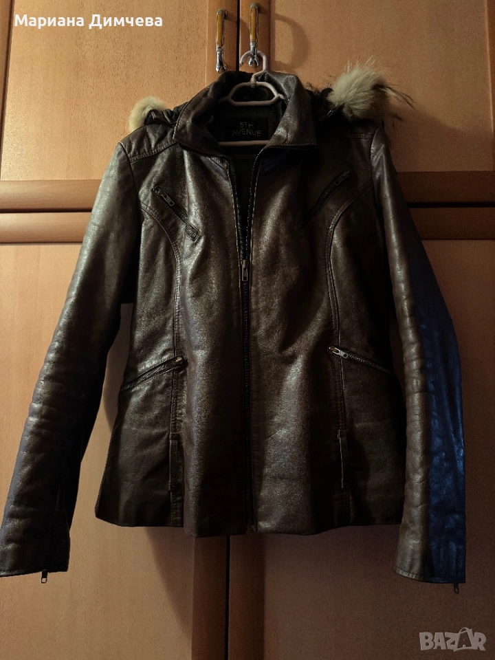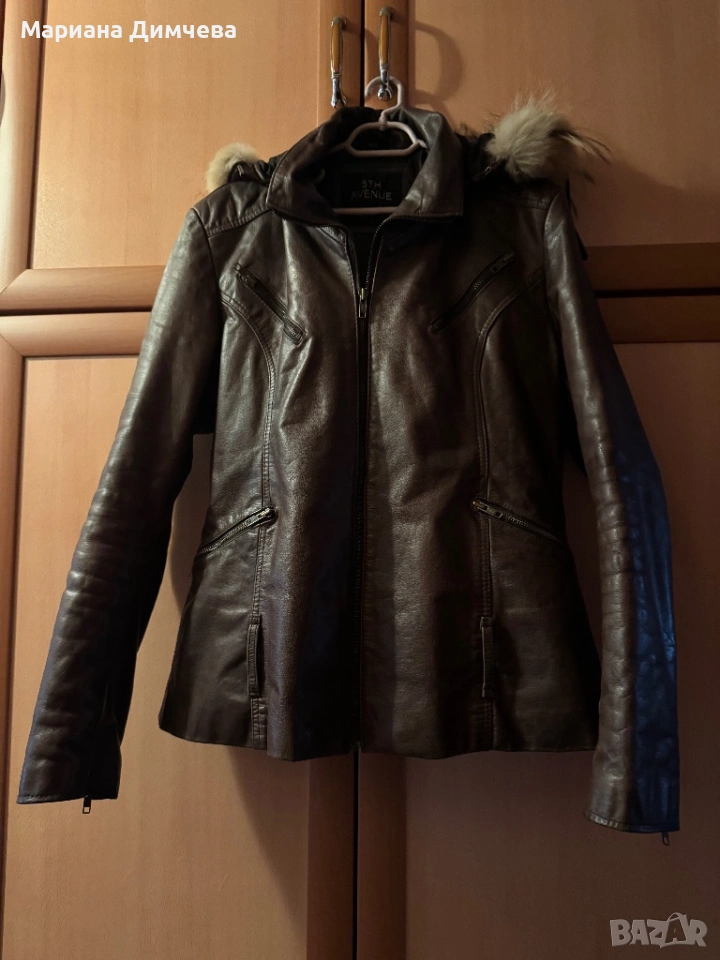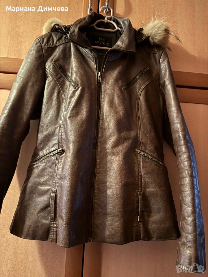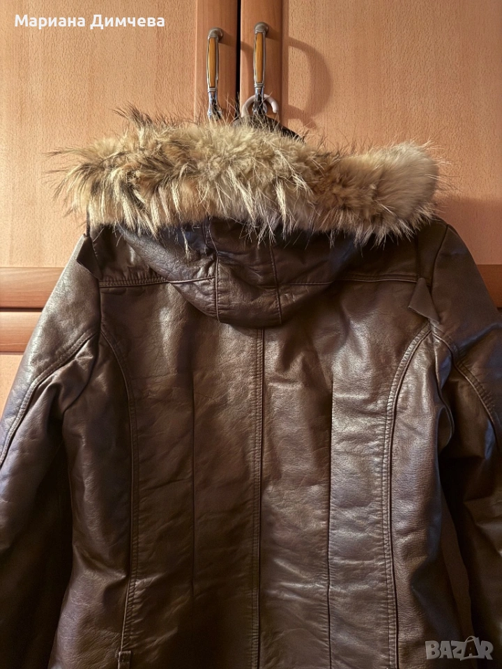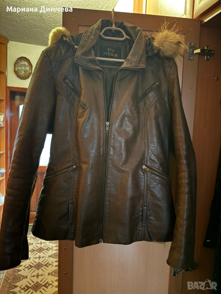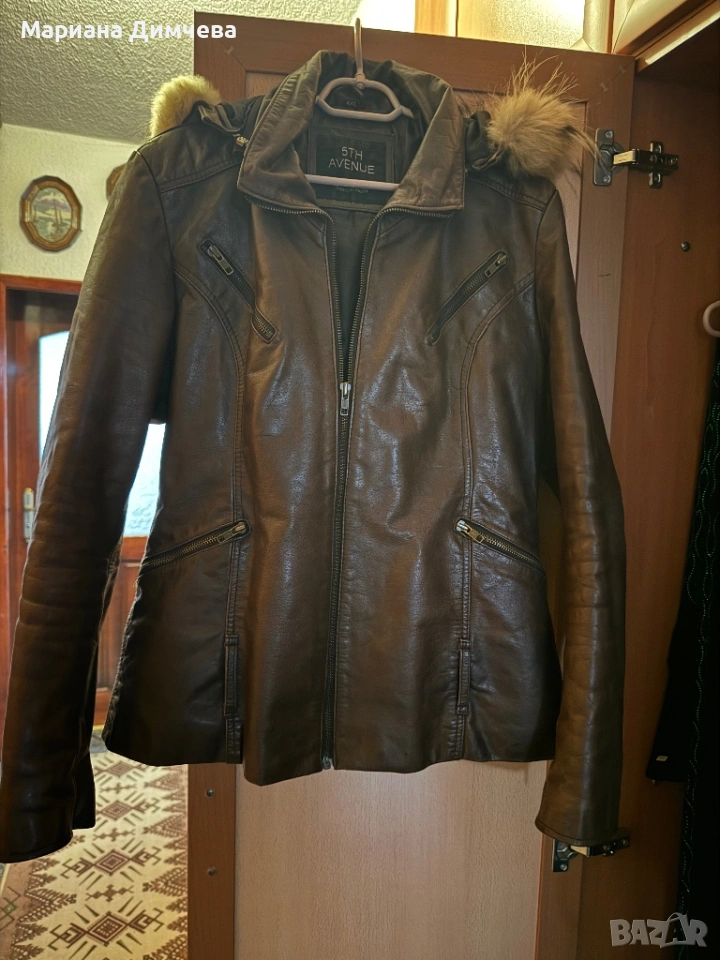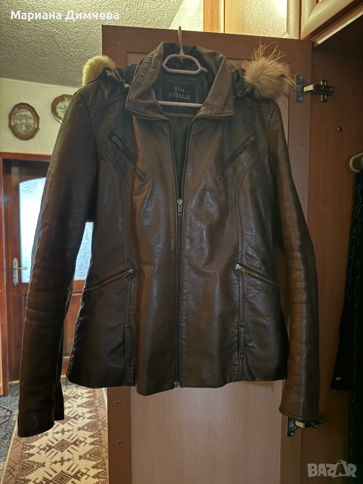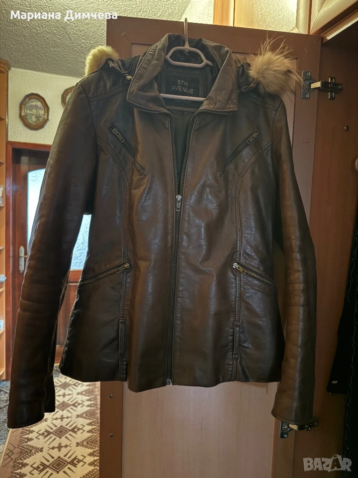Бутиково дамско яке от естествена кожа с качулка и естествен пух → Обява 53240681