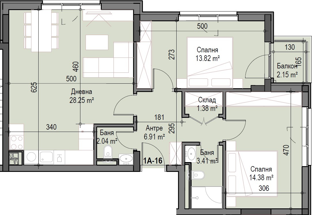 Компания Юнивърсъл с дългогодишен опит на имотния пазар представя просторен, тристаен апартамент в модерен жилищен комплекс 'Железни врата', в квартал с изградена инженерна и социална инфраструктора. В близост училища и детски градини. Апартамент 1А-16 се състои от дневна с кухненски бокс, две спални, баня/wc, втора тоалетна, балкон и склад. В комплекса има четири жилищни сгради с магазини и се постига благоприятна жизнена среда в богато озеленено пространство. Сградите се отличават със съвременна архитектура и луксозно изпълнени общи части и асансьор. Дограмата е пет камерна, най-висок клас с ниски енергийни разходи, предвидени са разводки за климатици във всички помещения, видео-домофона уредба за контролиран достъп, окабеляване за интернет, блиндирана входна врата. Предлагаме паркоместа и гаражи в сутерена под сградите. Удобна локация между метростанции Театрална и Хаджи Димитър , с бърз автомобилен достъп до центъра и Околовръстен път. Осигурено кредитиране. Цената е окончателна без индексации.