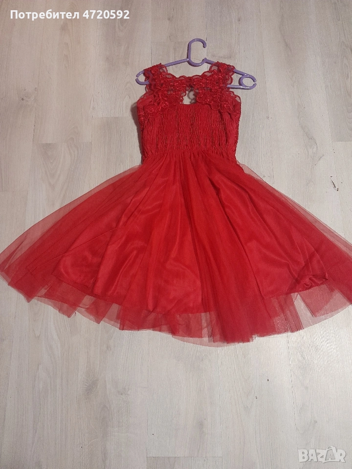 Продавам красива червена официална рокля, къс модел с тюл и дантела. Стои изключително елегантно и е подходяща за бал, сватба, кръщене, рожден ден и други официални поводи.