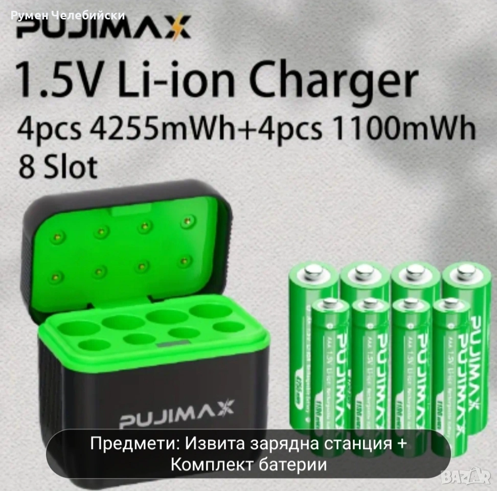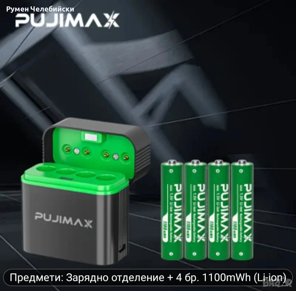 PUJIMAX 4-слотов заряден калъф за литиеви батерии, включва 4 презареждаеми 1.5V AAA висококапацитетни литиеви батерии 1100mWh. Калъфът разполага с интелигентно бързо зареждане и е подходящ за игрови конзоли, дронове. Комплектът за ряден калъф и батерии зарежда само 1.5V литиеви батерии. цена 15€