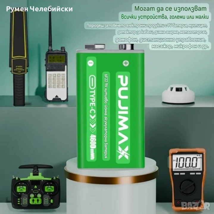 Цени;PUJIMAX 9V Акумулаторна литиева батерия, 4600mWh, 1.5-часово бързо зареждане, 1200 цикъла, Type-C кабел за зареждане, Висок капацитет, 9V - 8.00€