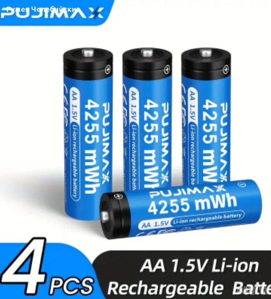 PUJIMAX 4бр AA 1.5V Литиево-йонни Акумулатори - Висок Капацитет 4255mAh, Над 1500 Цикъла, Зареждане с Type-C с Кутия и Кабел, Подходящи за Дистанционни Управления, Дронове, Цифрови Везни, Висок Капацитет. цена за комплект 10.00€