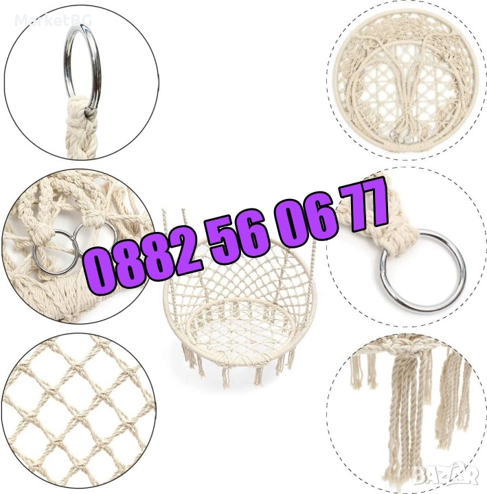 Модел 2: Градинска висяща люлка, въжена люлка хамак с възглавница - 28 евро