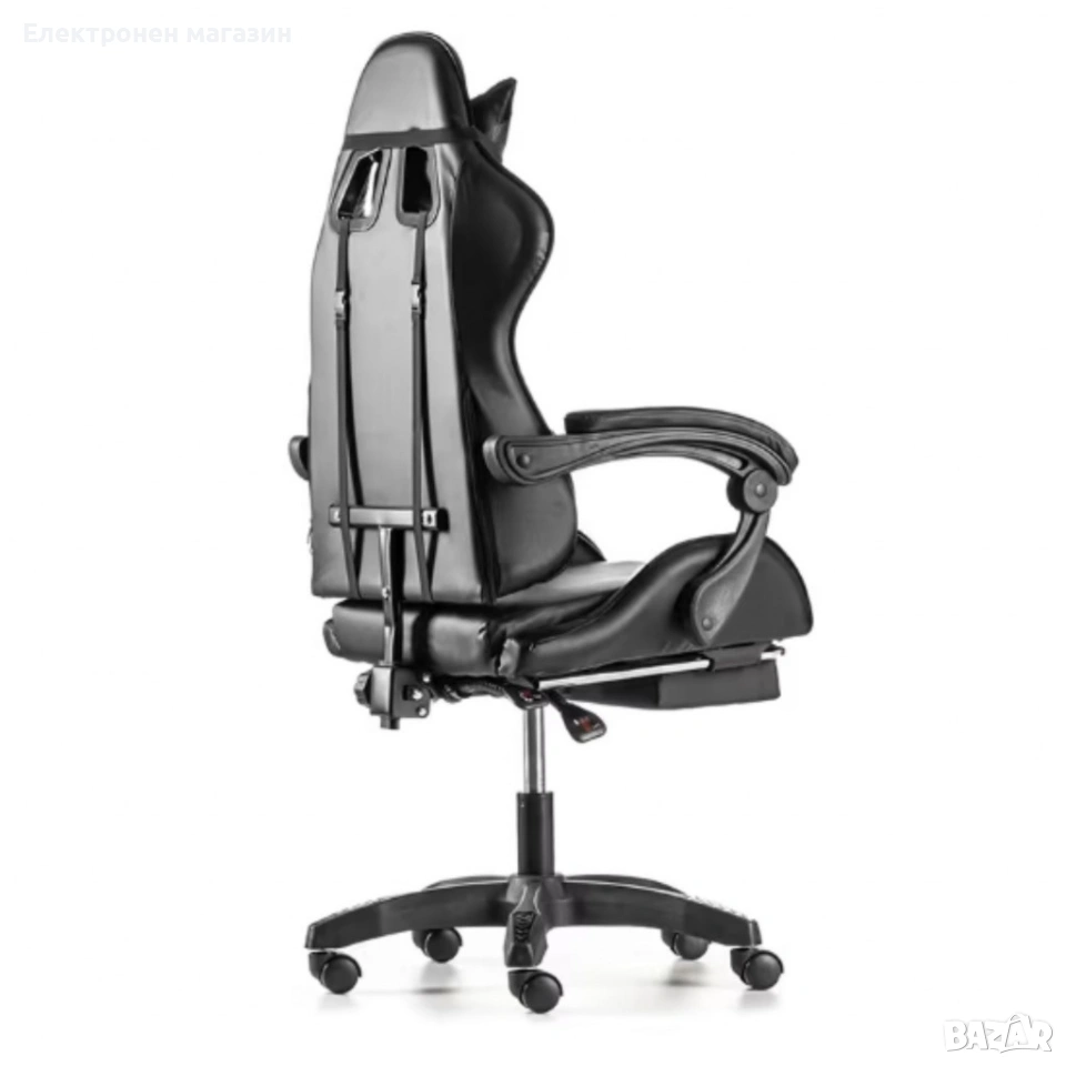 Черен геймърски стол с прибираща се поставка за крака – максимален комфорт при дълги часове игра