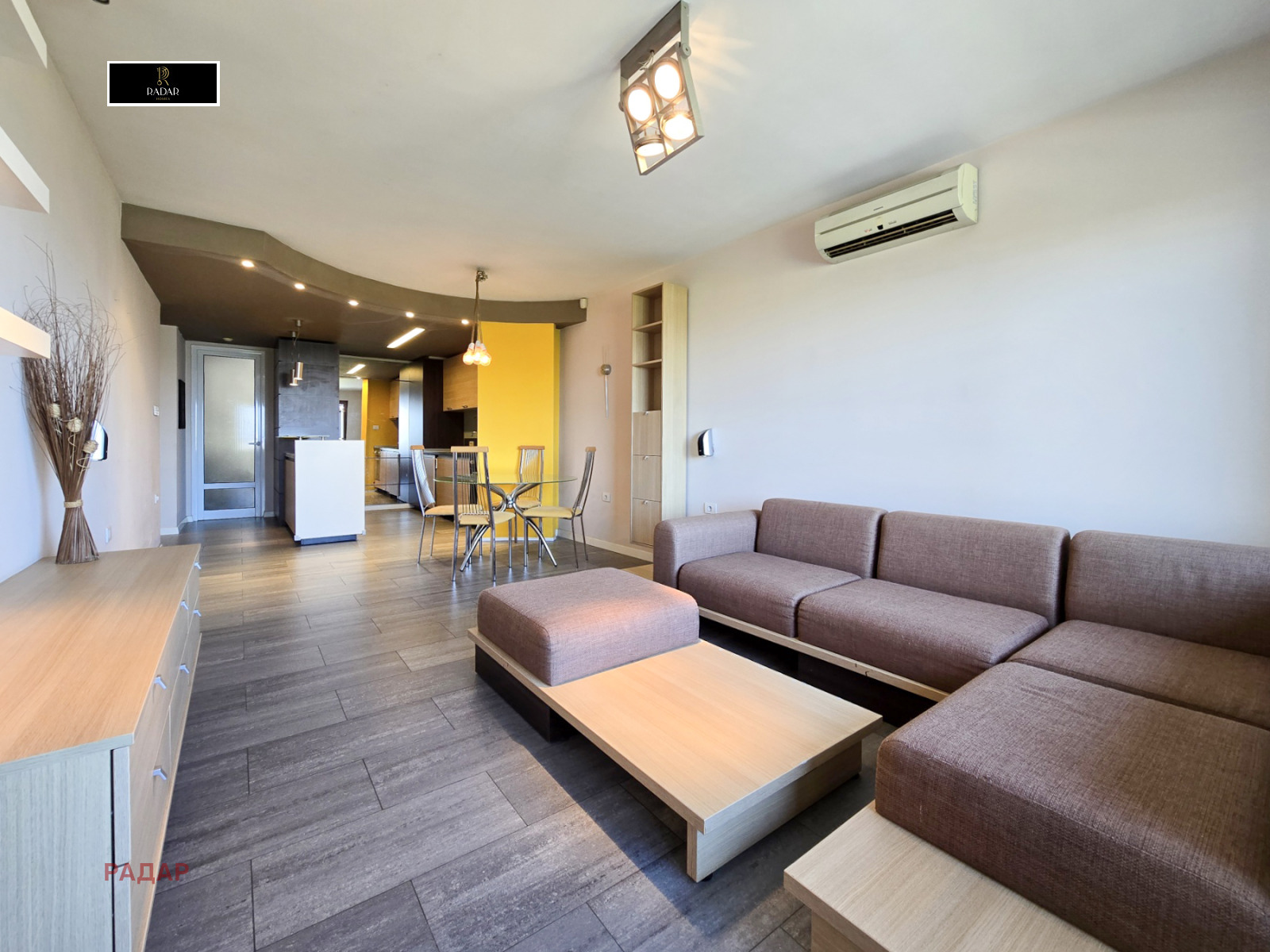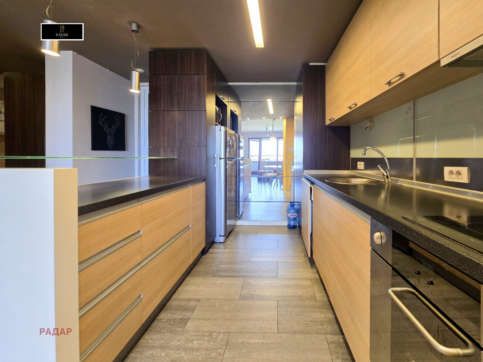 - Дизайнерско обзавеждане с луксозно изпълнени мебели и осветителни тела, както и пълно кухненско оборудване с висок клас уреди (хладилник, пералня, съдомиялна, керамични котлони, фурна, абсорбатор,микровълнова, климатик).