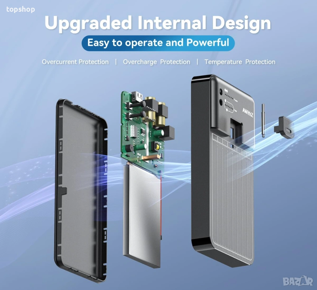Функция Power Bank: Устройството може да зарежда вашия телефон в спешни случаи през USB изхода.