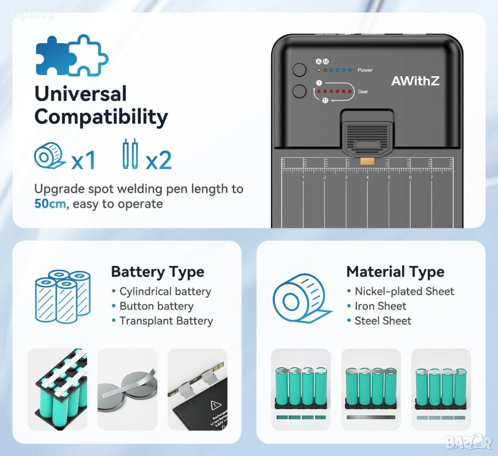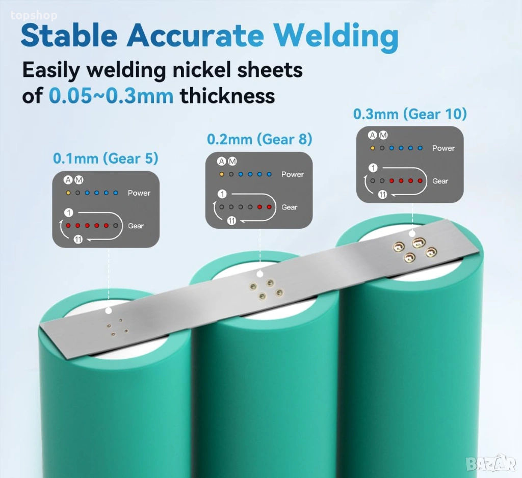 Диапазон на заваряване: Поддържа никелови ленти с дебелина от 0.1mm до 0.15mm – идеално за 18650 батерии и ремонт на батерии за мобилни телефони.