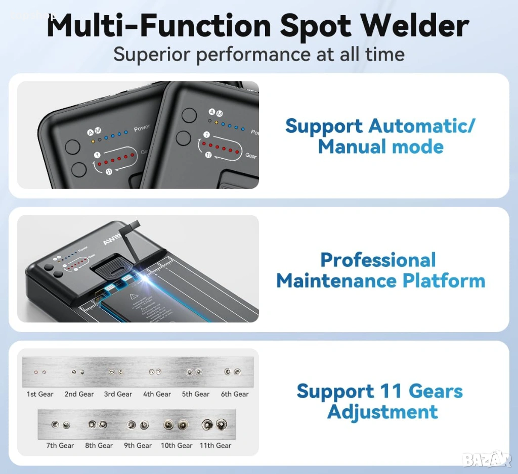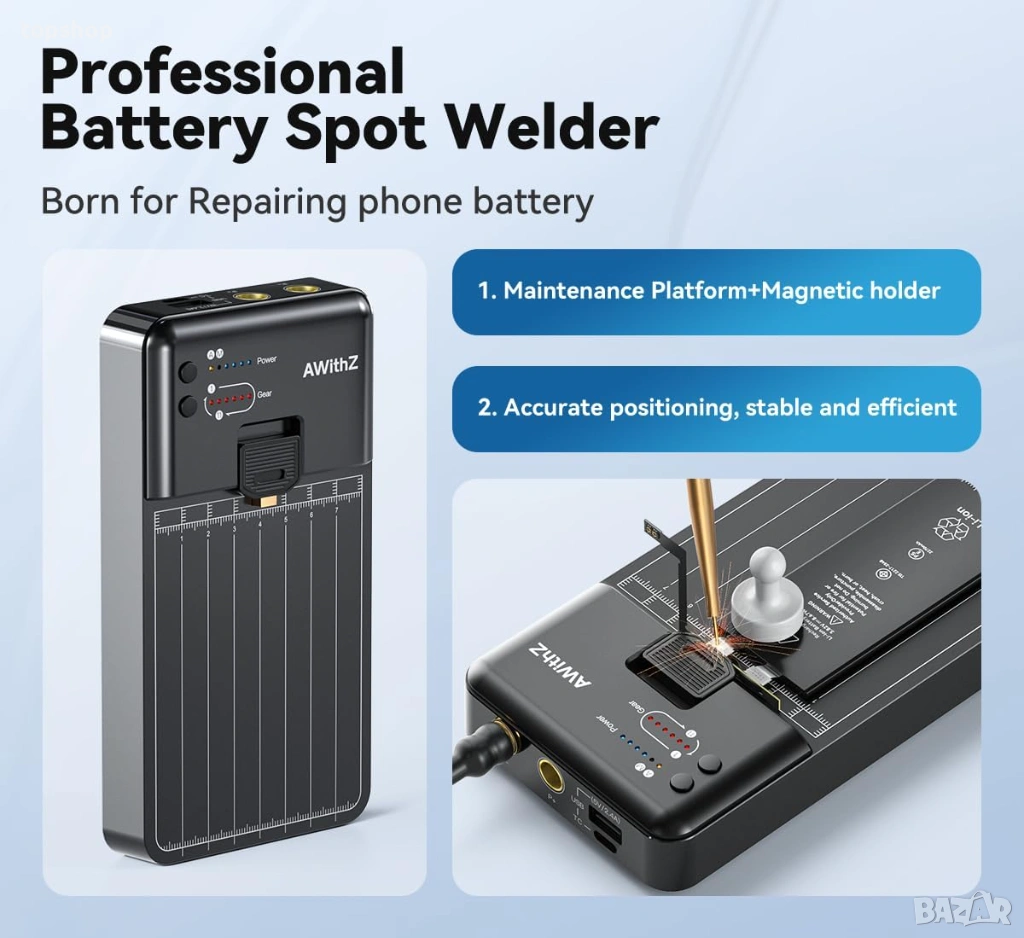 заварчик AWithZ MC1 – 0.1-0.15mm, Интелигентна защита, OLED Дисплей