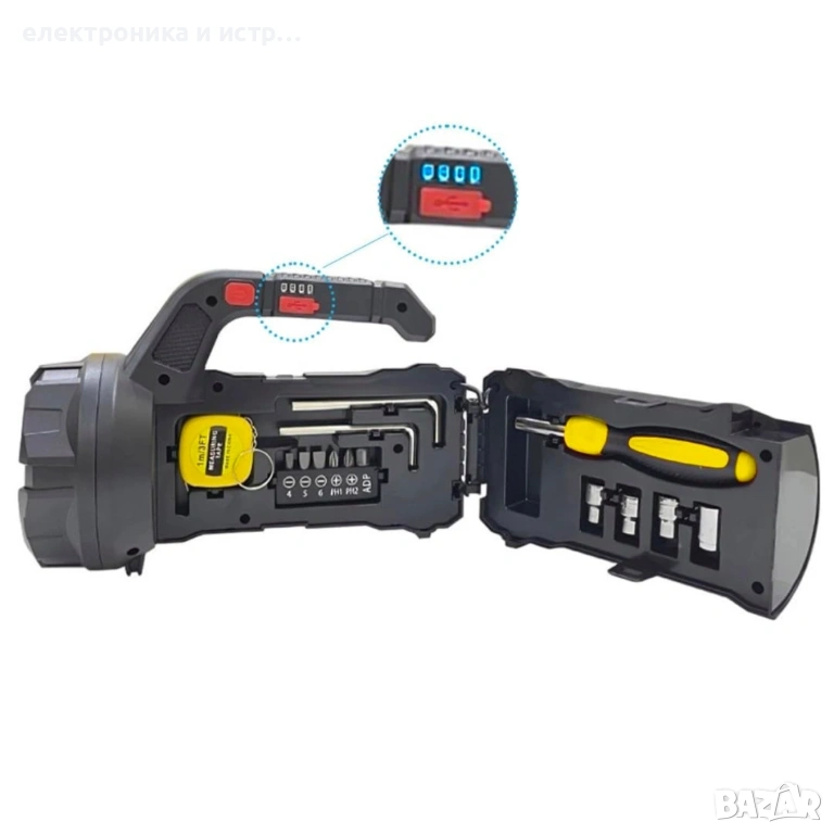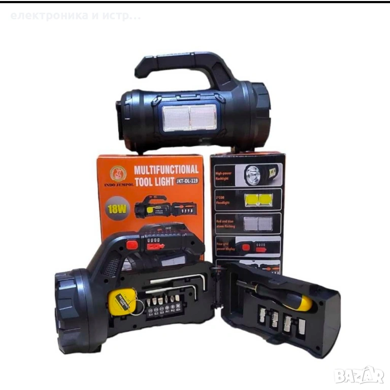 17 в 1 Многофункционален 18W LED фенер с вграден комплект инструменти