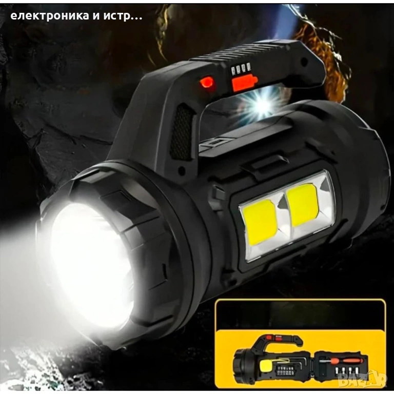 COB прожектор: Разполага с 2*COB прожектор за осветление на широка площ, идеален за дейности на открито и работни пространства.