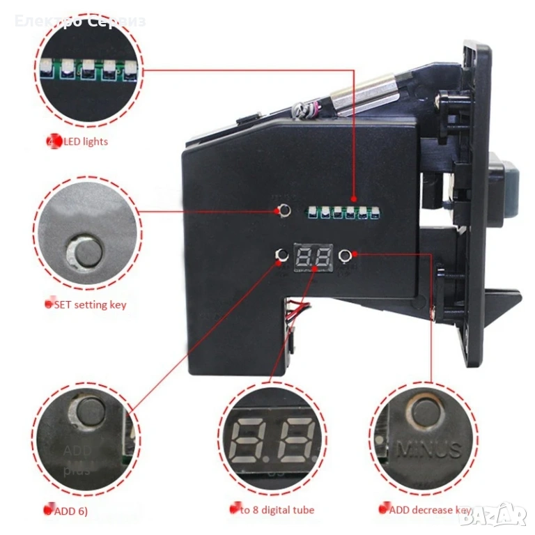да се настрои за няколко вида монети с различна стойност – 0.50€,1 €,2€ или с