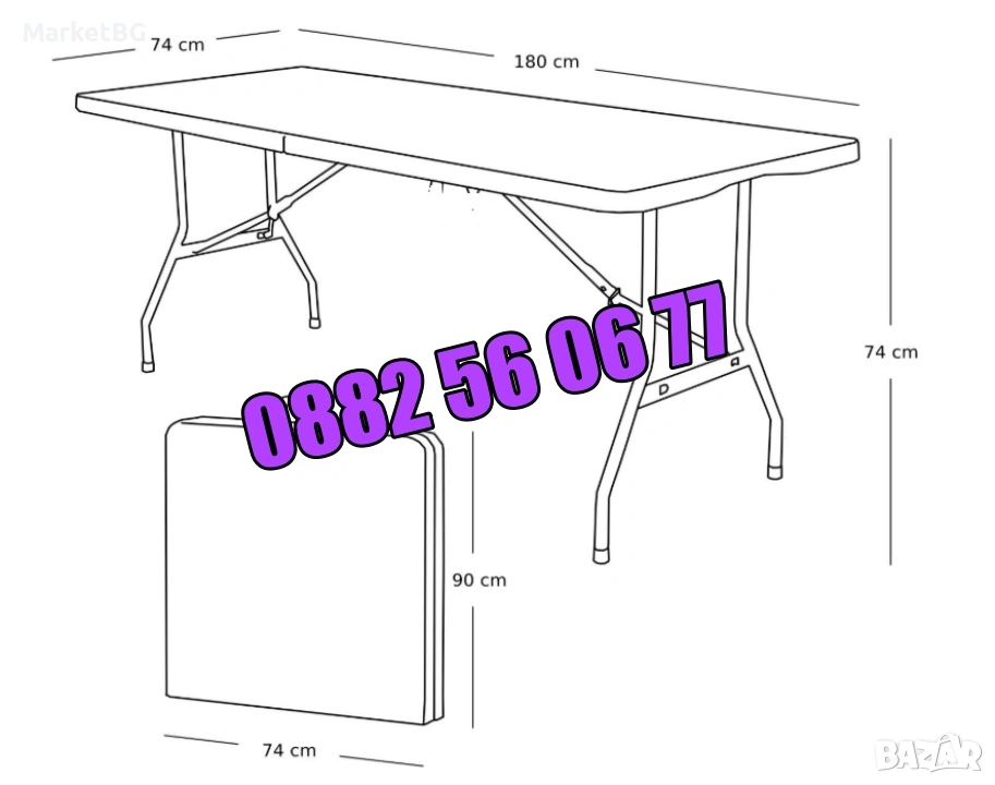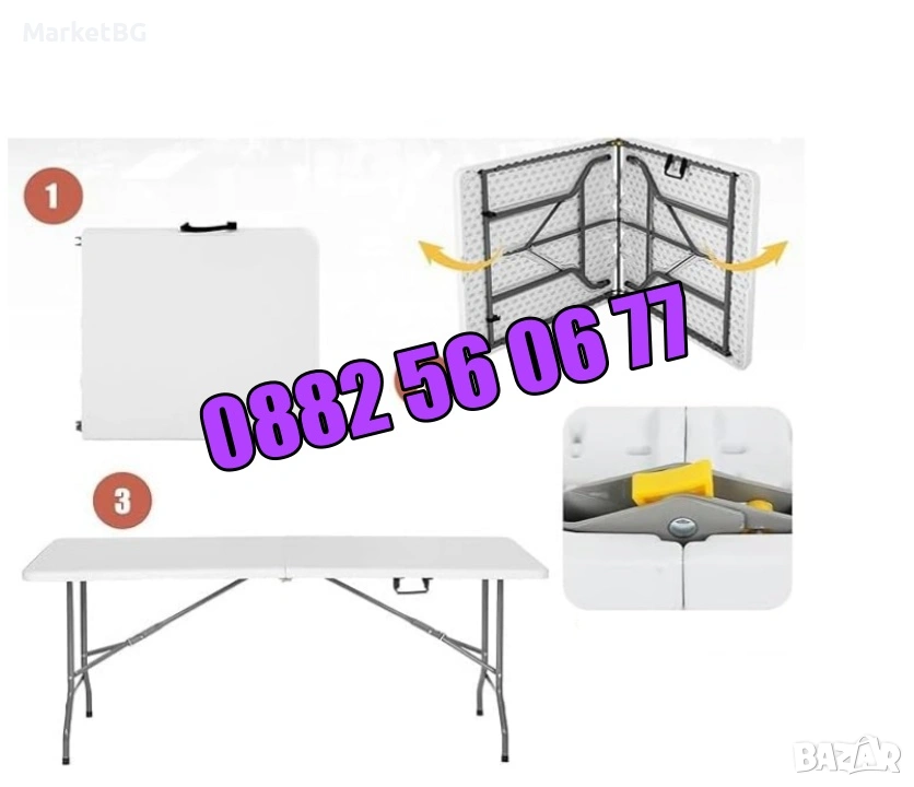 Сгъваема маса за кетъринг, градинска маса 180/74 см, къмпинг маса