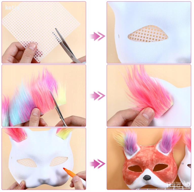 Комплект „Направи си сам“ за маска: Това е пълен комплект „Направи си сам“, а материалите, които предоставяме, са цветни. Можете да ги съчетаете с любимите си цветови комбинации