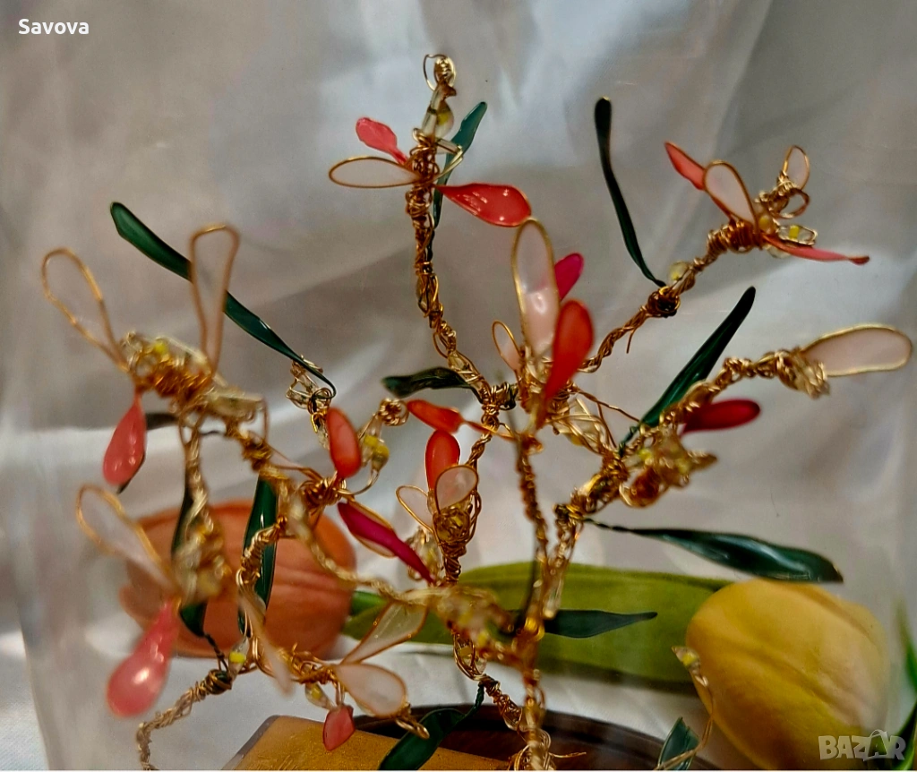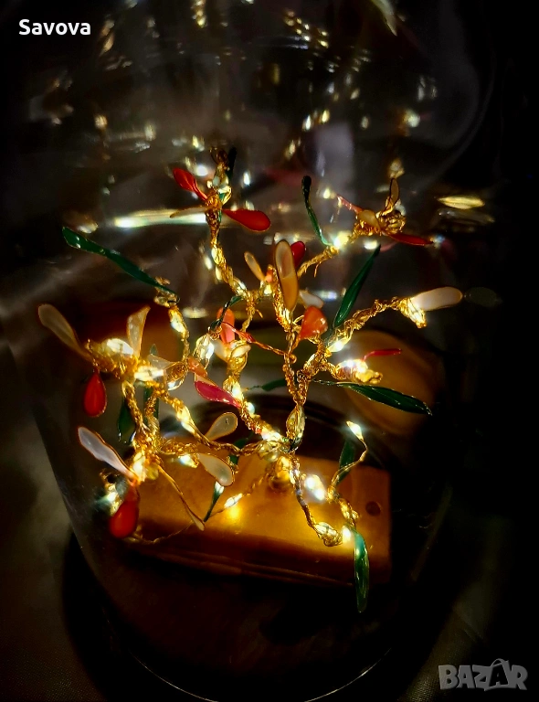 Материали: позлатена тел, лак, лед светлини, пластмасов купол