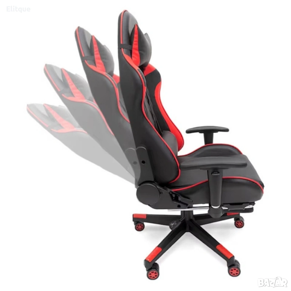 Ергономичен геймърски стол с функция за масаж и подложка за крака - червен