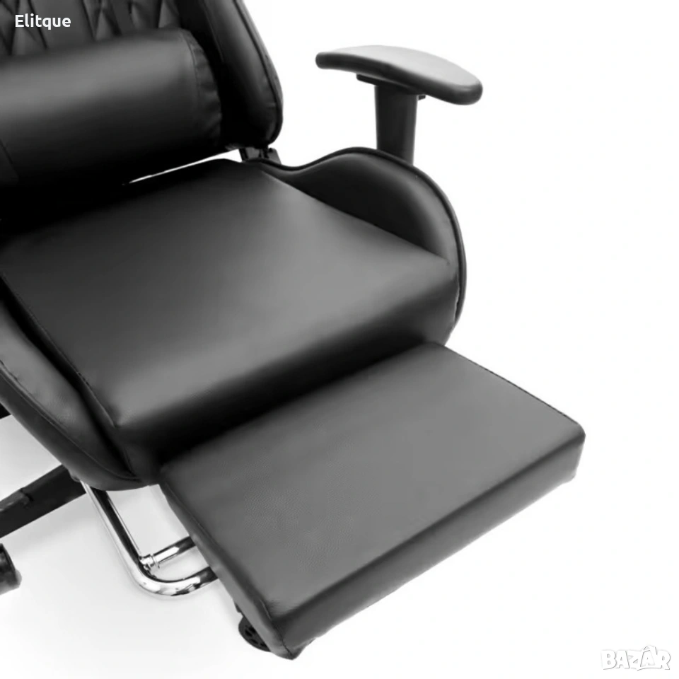 Геймърски стол с прибираща се подложка за крака и функция за масаж - черен