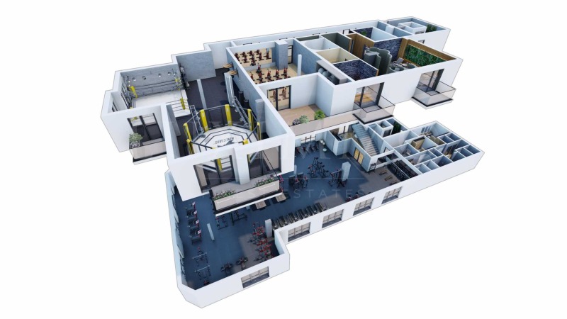 ниво 2 - 426 кв.м.: зала за бокс, зала за йога/пилатес, две гардеробни с бани/тоалет, СПА зона.