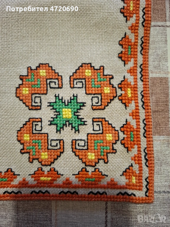 Старо, неизползвано каре на ленена панама ръчно бродирано.