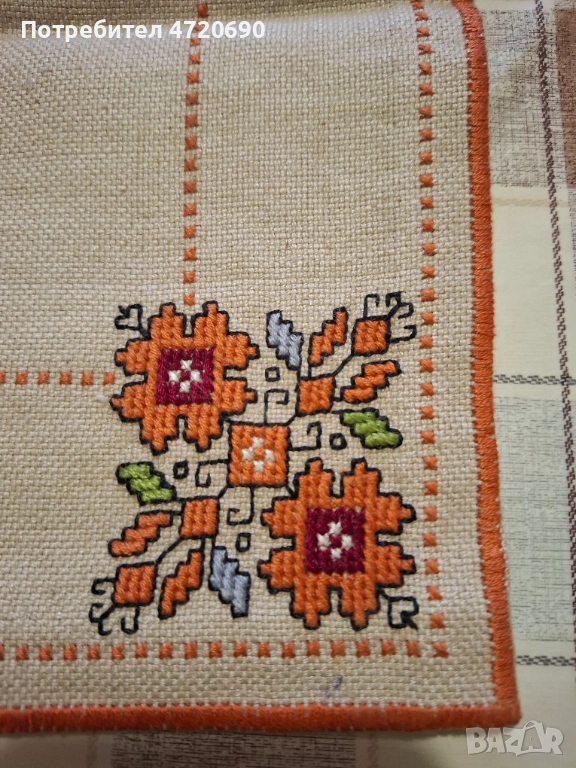 Старо, неизползвано каре на ленена панама ръчно бродирано.
