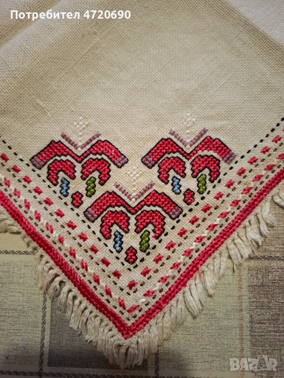 Старо, неизползвано каре на ленена панама ръчно бродирано.