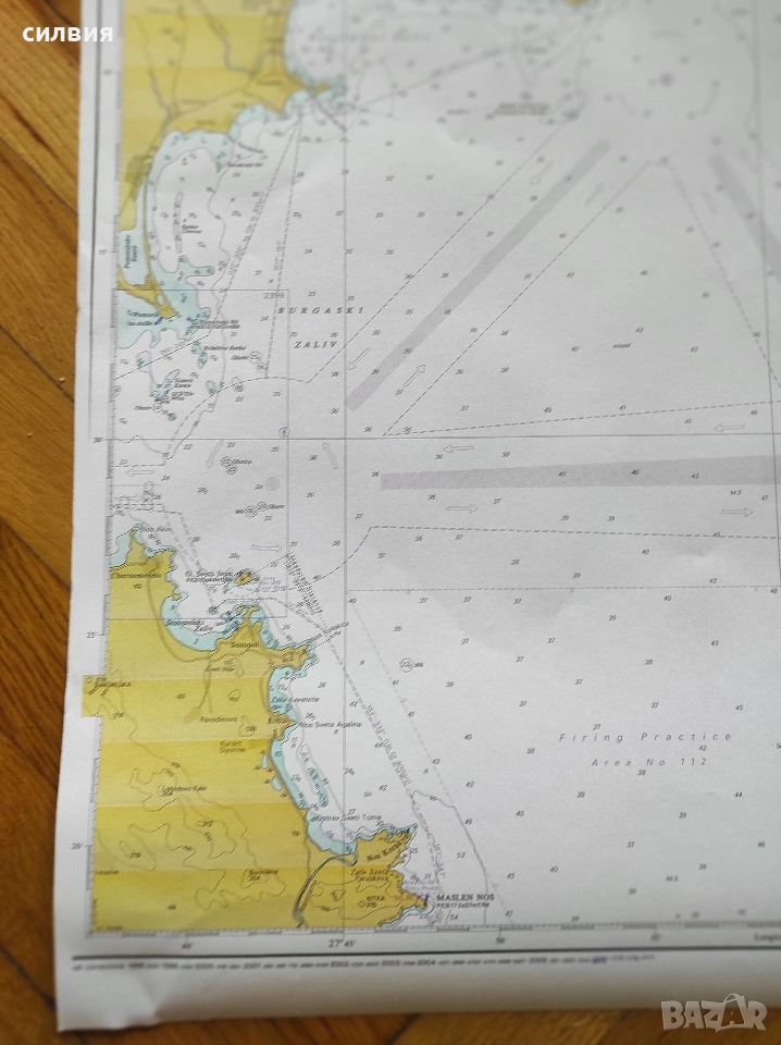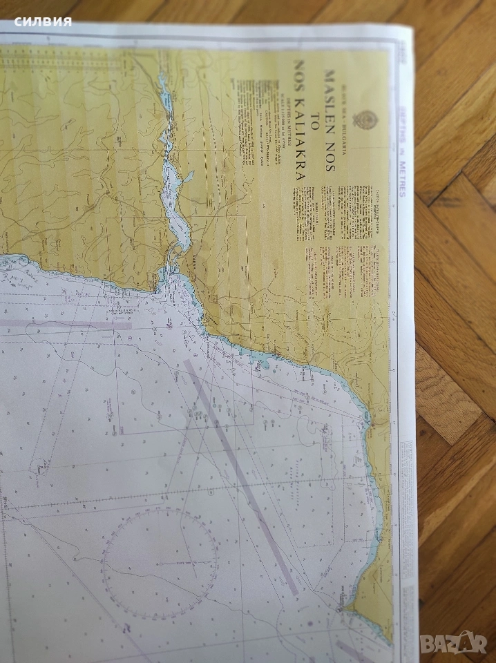 навигационна карта на хартиен носител,от нос Калиакра до Маслен нос, размери 1,06м/69,5см
