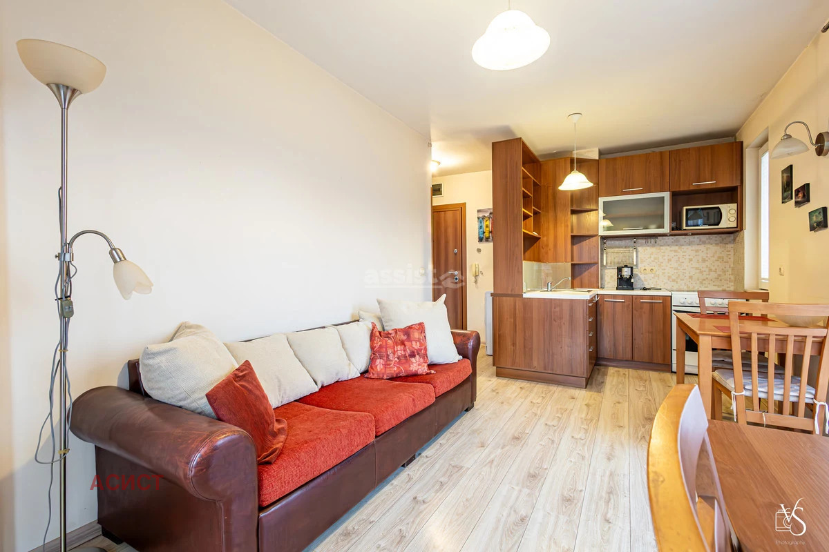 Апартаментът се състои от просторен хол с кухненски бокс, спалня, баня с тоалетна и голяма тераса.