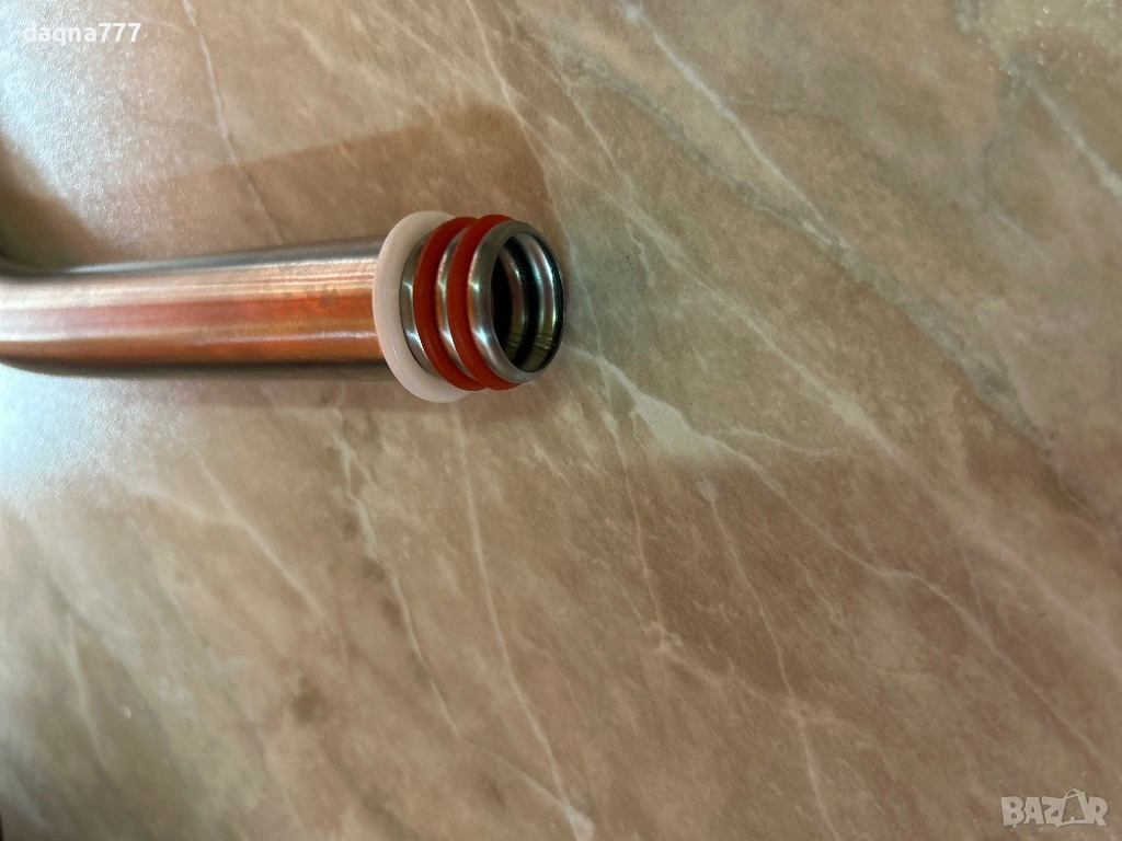 Монтаж: В долната си част има резба и уплътнителни О-пръстени (видими са червените), завинтва се към основното тяло на смесителя.