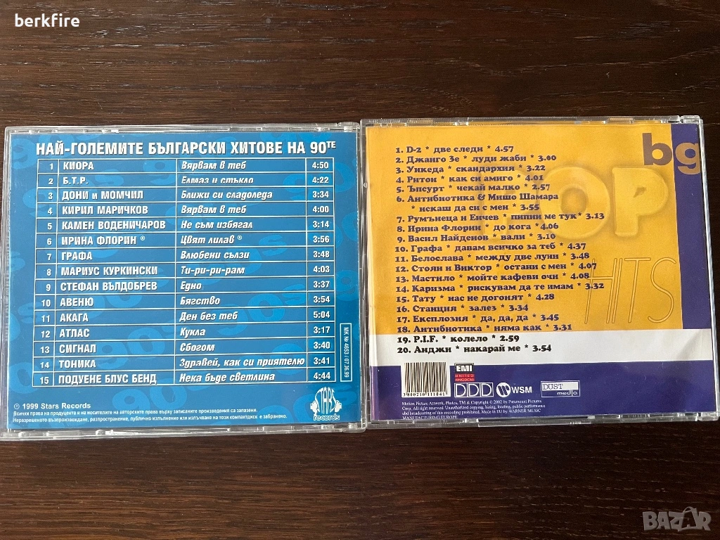 Два CD с най-големите български хитове. Заглавията се виждат на гърба на дисковете. 5€ е за диск!