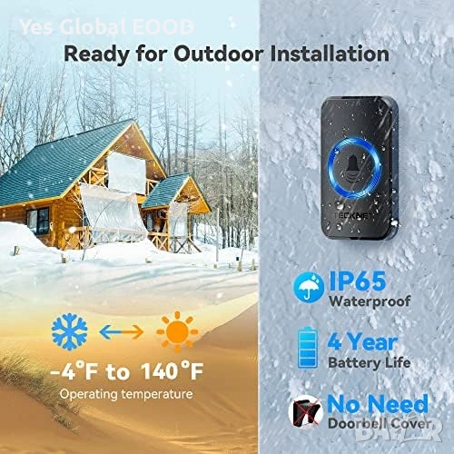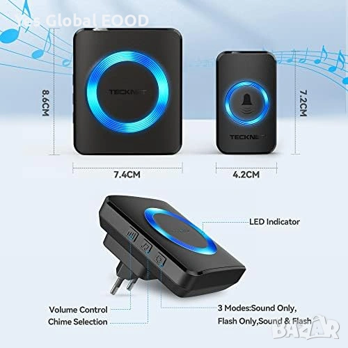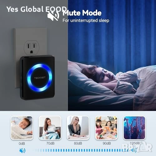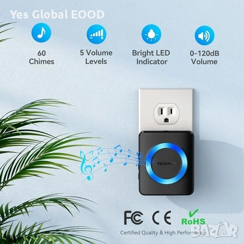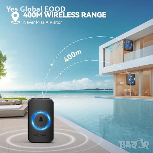 TECKNET безжичен звънец 400 м с 60 мелодии водоустойчив