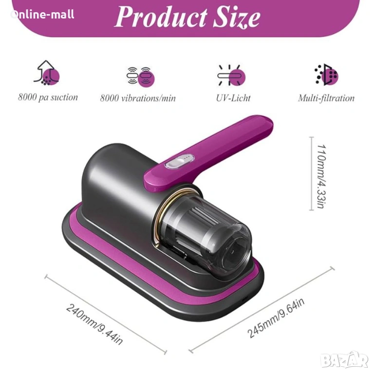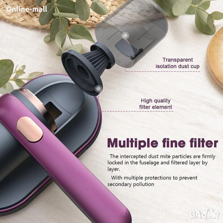 Превърнете дома си в по-здравословно място за сън и почивка с нашата високоефективна ръчна прахосмукачка против акари. Този уред не просто почиства повърхностите, а прониква дълбоко в текстила, за да унищожи микроскопичните акари, бактерии и алергени. Със своята мощна петстепенна технология, тя е незаменим помощник за семейства с малки деца, домашни любимци или хора с алергии и чувствителна кожа.