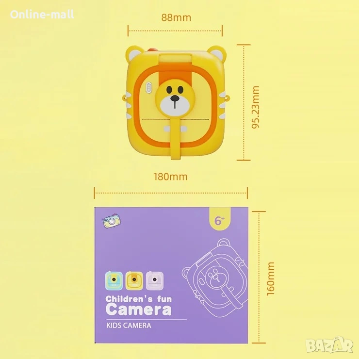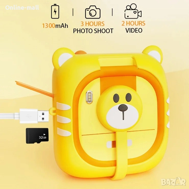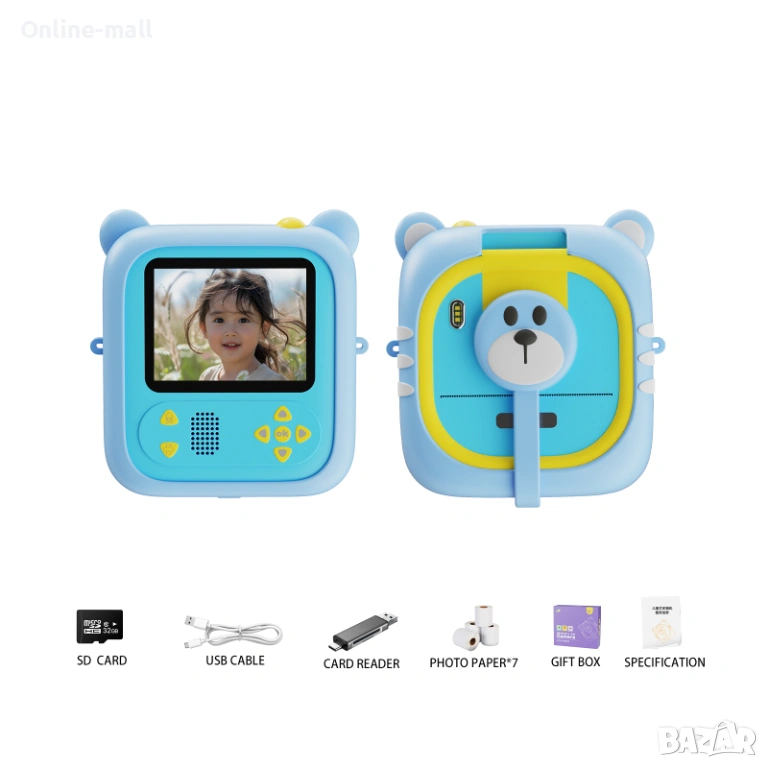 С включената TF карта 32GB, детето може да снима, записва видео и съхранява спомени още от първия ден. Камерата е подходяща за деца 6+ години и е отличен подарък за рожден ден, празник или пътуване.