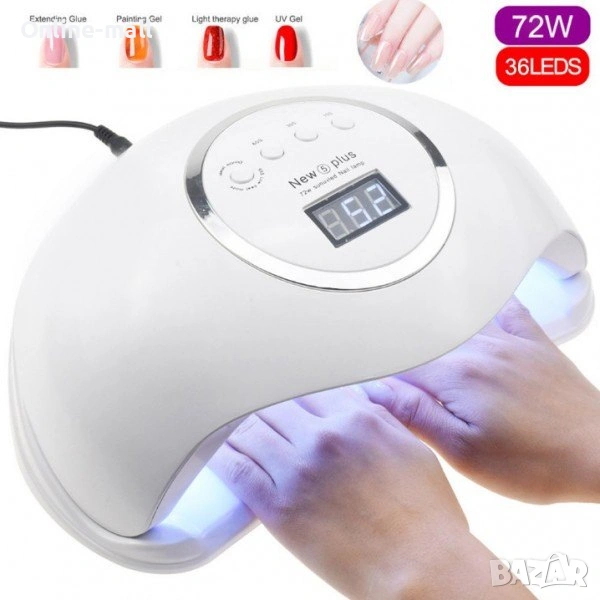 Ултра мощност (72W): Снабдена с 36 стратегически разположени UV/LED диода, лампата гарантира пълна полимеризация на всички видове покрития – от стандартен гел лак до най-твърдите изграждащи и акрилни гелове.