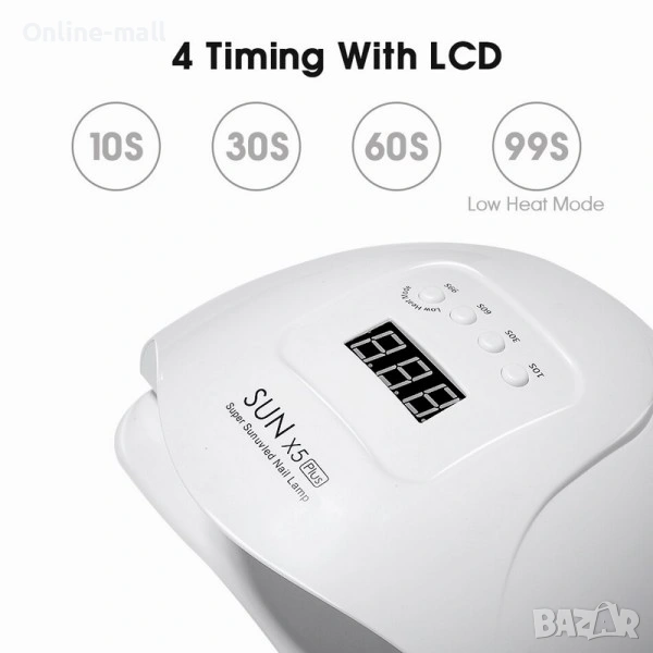 Интелигентен Low Heat режим (99s): Специална функция за работа при ниска температура, която елиминира чувството на парене – идеално за клиенти с чувствителни нокти и при работа с изграждащ гел.