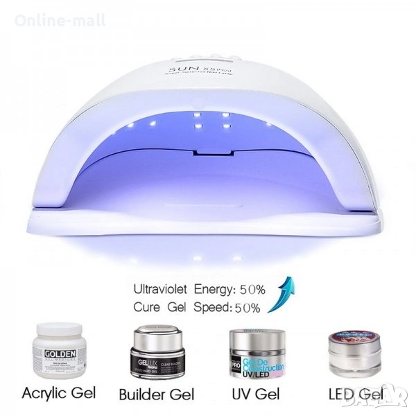 Универсална съвместимост: Хибридната технология (365 + 405nm) позволява безупречна полимеризация на всички видове гел лак, UV гел, изграждащ гел, Shellac, акрил и лепила за декорации.