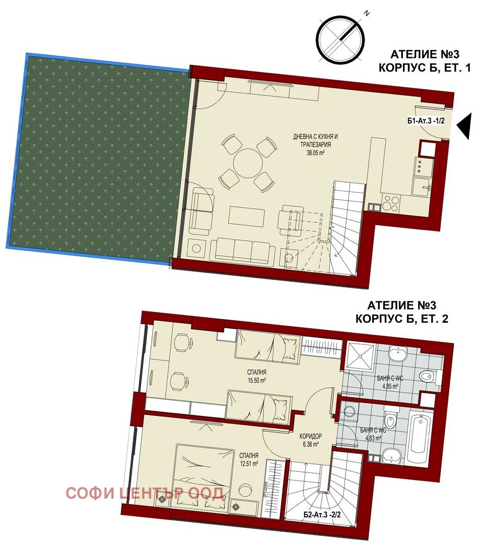 Предлагаме просторен, слънчев и панорамен тристайно ателие/мезонет/магазин. Площ на обекта е 96,5 кв.м., общи части 16,69 кв.м. и двор от 29,07 кв.м. или общо 142,26 кв.м. ПРЕД АКТ 16 в нов луксозен затворен комплекс в Сердика (до зона Б-5) на бул. Акад. Иван Гешов .